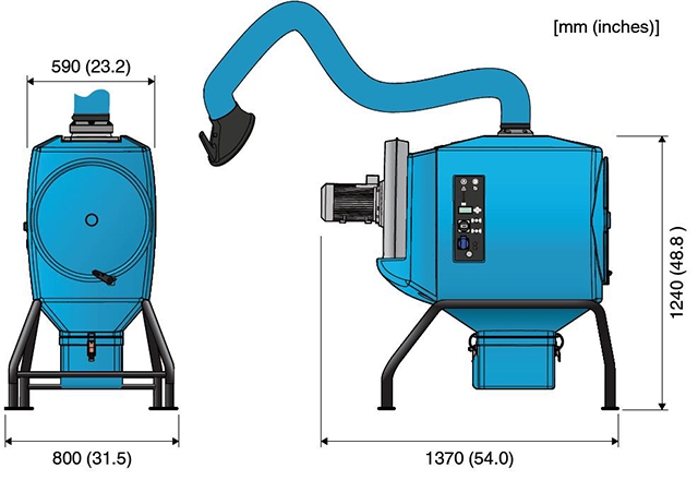 El Filtro 12A está equipado con un potente ventilador para una capacidad máxima de flujo de aire de 1 200 m3/h (700 CFM) y es ideal para aplicaciones de polvo o humo de frecuencia media.
