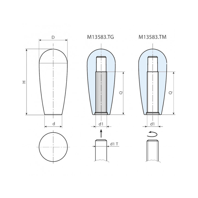 Bajo pedido, y por determinadas cantidades, se puede suministrar el mango con el orificio roscado.
