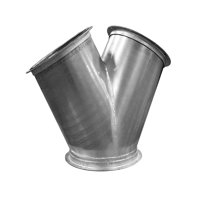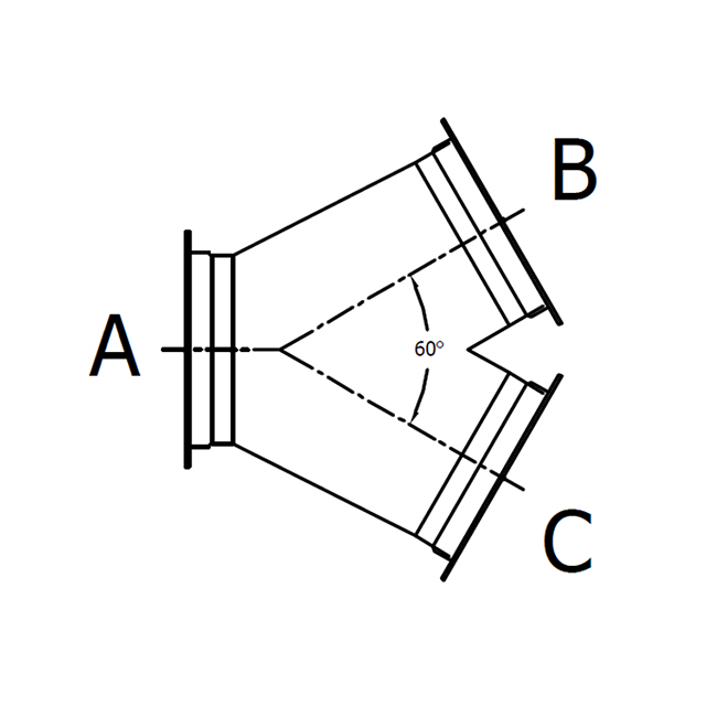 Los ramales de conductos de Nordfab en forma de Y (a veces llamados "Yes verdaderos") son estándar de 60º entre las patas, opcionales de 90º.