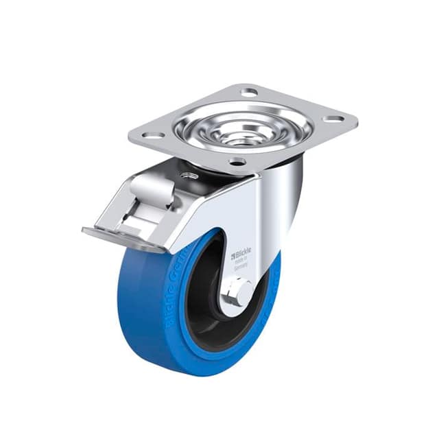 Rueda giratoria de chapa de acero, con platina atornillable, con freno 'stop-fix', rueda para carga pesada, con banda de rodadura de goma maciza elástica 'Blickle EasyRoll', con núcleo de poliamida, azul que no dejahuellas