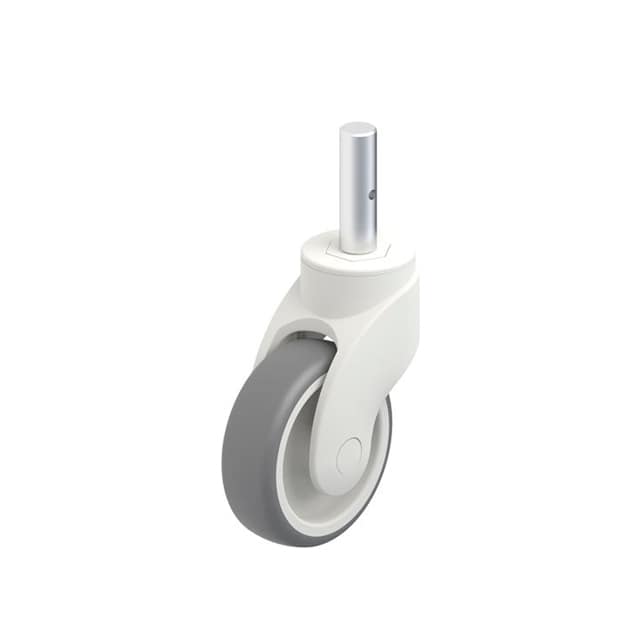 Rueda giratoria de material sintético, color blanco grisáceo, con espiga, rueda, con banda de rodadura de goma termoplástica, con núcleo de polipropileno