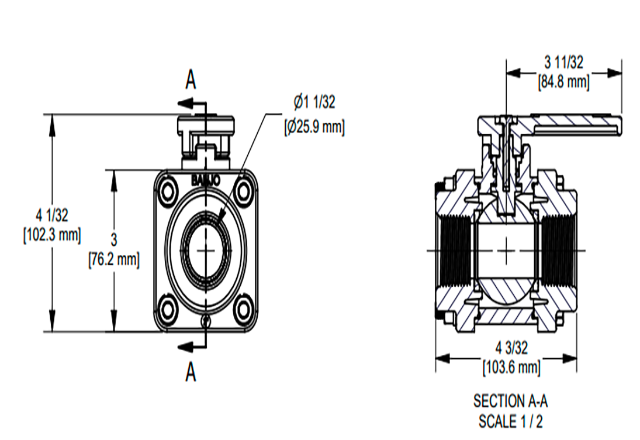 - La bola autoalineable se mueve libremente contra los asientos de PTFE para un funcionamiento suave. La válvula se abre y se cierra con muy poca presión sobre el mango.