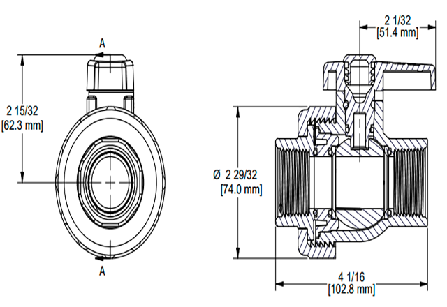 Válvula SpinWeld de Unión Simple de1 1/4″